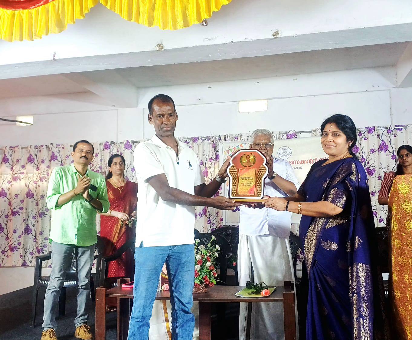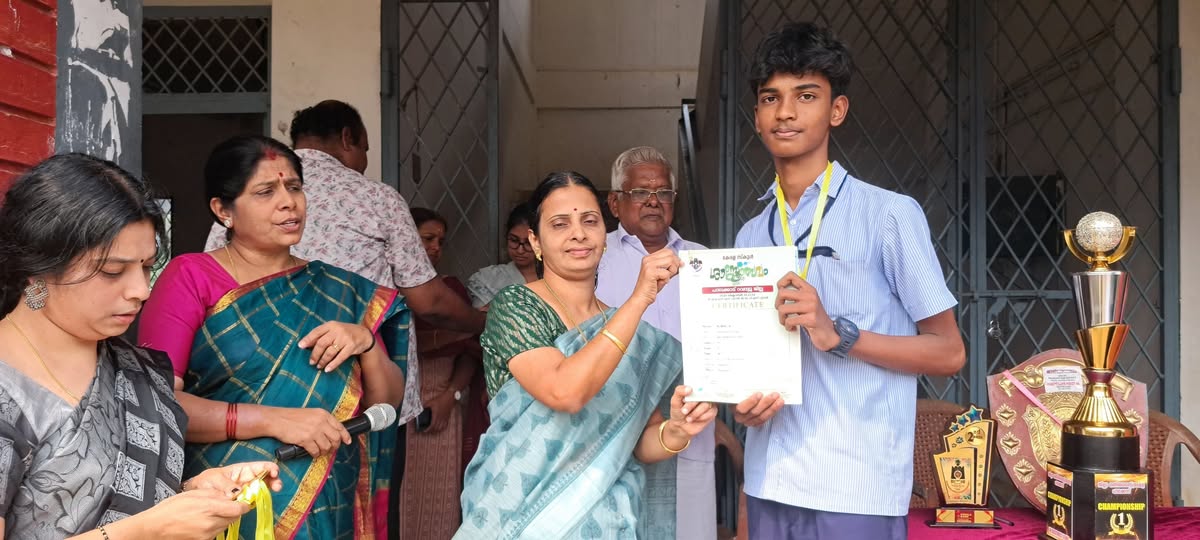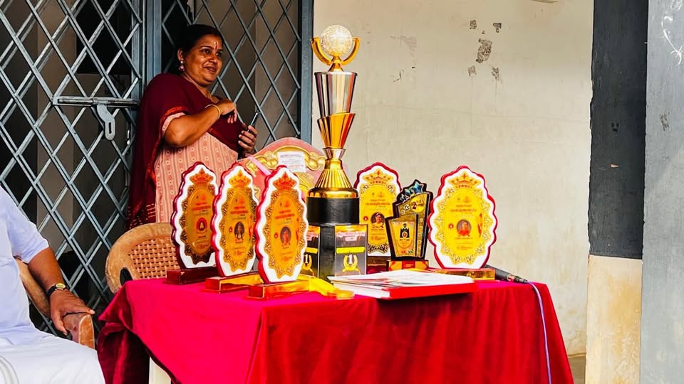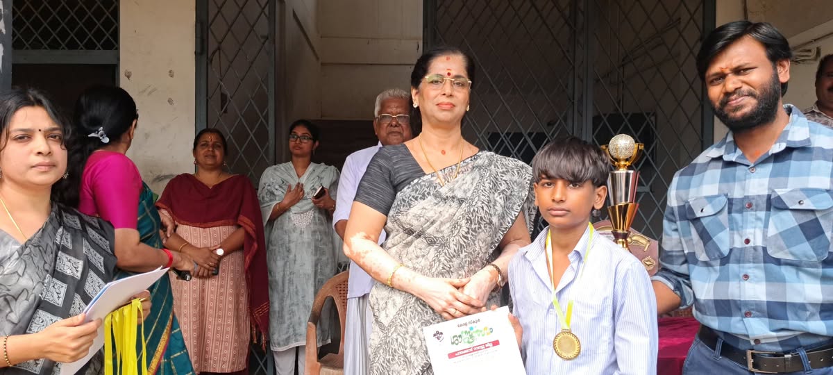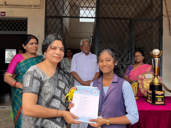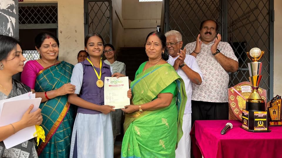 പാലക്കാട് ഉപജില്ലാശാസ് ത്രോത്സവത്തിൽ ഹൈസ്കൂൾ വിഭാഗം ഗണിത ശാസ്ത്രമേളയിൽ ഓവറോൾ ചാമ്പ്യൻ ഷിപ്പ് നേടിയ കർണ്ണകയമ്മൻ ഹയർസെക്കന്ററി സ്കൂൾ പാലക്കാട് നഗരസഭ ചെയർപേഴ്സൺ ബഹുമാനപ്പെട്ട പ്രമീള ശശിധര ൻ അവർകളിൽ നിന്ന് ട്രോഫി ഏറ്റുവാങ്ങുന്നു